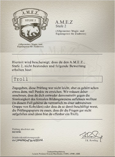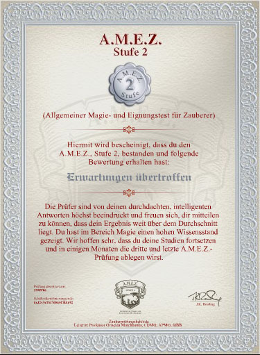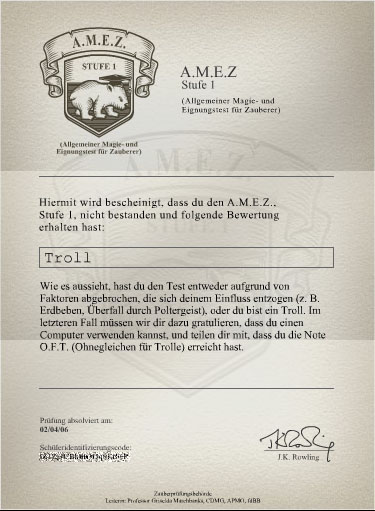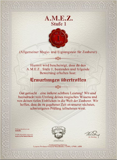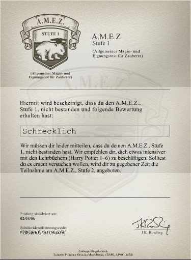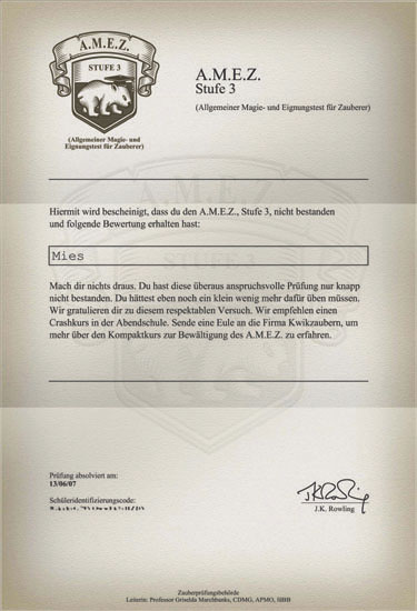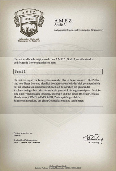 oder A.M.E.Z.(deutsche Bezeichnung: Allgemeiner Magie- und Eignungstest für Zauberer