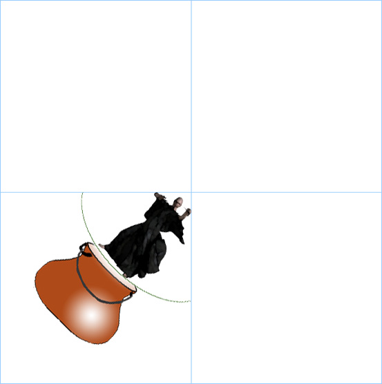 - Male, falls du nicht die VOLDEMORT AUS DEM KESSEL - Vorlage verwendest, ein Bild von Voldemort, der über dem Kessel schwebt auf das Papier (oder ein Dunkles Mal über einem Zauberstab, Blubberblasen und Dampf über einem Kesse, ....). Wichtig ist, dass das geschlossene Ende des Papiers oben ist, so wie auf dem Bild. Schneide dann entlang der grünen Linie Voldemort (oder das dunkle Mal) ab: