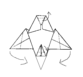 17. Knicke entlang der Linien die oberen beiden Spitzen nach oben, die untere Spitze nach unten, und die beiden Flügelspitzen schräg nach unten: